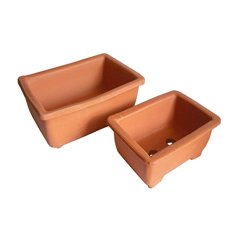 Bonsai pots are made from various materials, but generally what is commonly available would be plastic, fiberglass, cement, mica and ceramic. various kind of ceramic should be classified, by considering its construction and make. As a rough guide, earthenware are normally fired at temperatures in the range of about 1000 to 1200 degrees Celsius. This is the most common form of bonsai pot. Stoneware is fired at between about 1100 to 1300 degrees Celsius; and porcelains at between about 1200 to 1400 degrees Celsius. However, the way that ceramics mature in the kiln is influenced not only by the peak temperature achieved, but also by the duration of the period of firing.